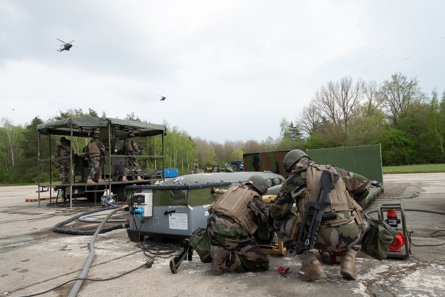 - Déployer des zones logistiques avancées dans un contexte aéroporté (transport, manutention, protection, circulation et escorte).